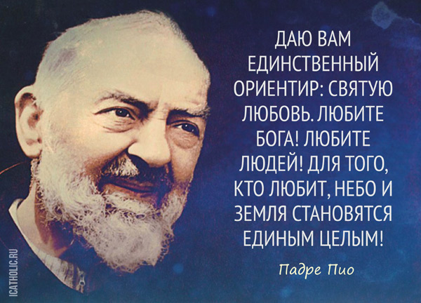 Даю вам единственный ориентир: святую любовь. Любите Бога! Любите людей! Для того, кто любит, небо и земля становятся единым целым! Падре Пио