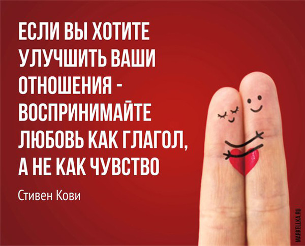 Если вы хотите улучшить ваши отношения - воспринимайте любовь как глагол, а не как чувство. Стивен Кови